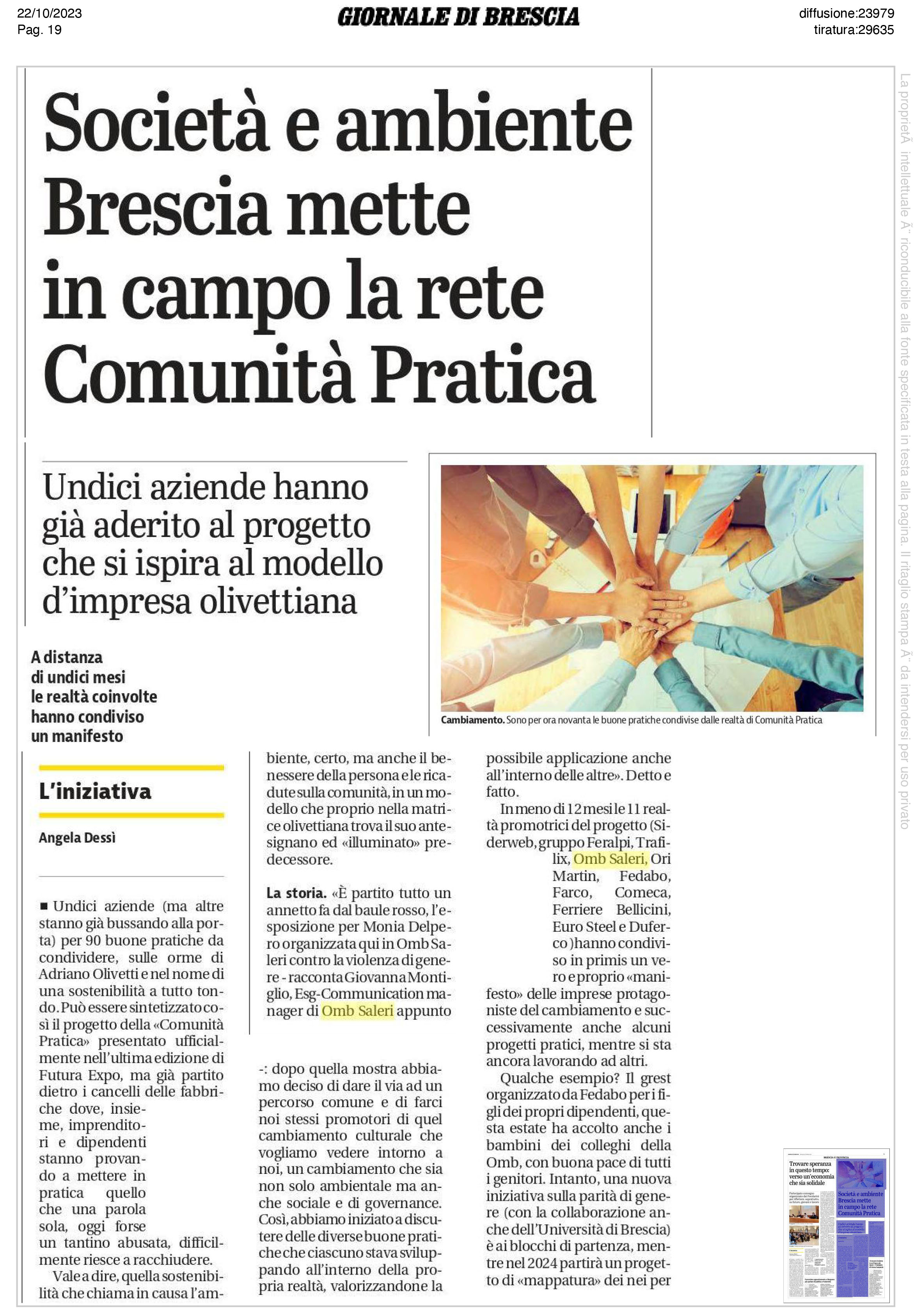 22/10/2023 GIORNALE DI BRESCIA
